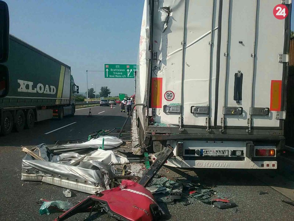 Galéria k článku Pri Trenčíne sa zrazili dva nákladiaky, po nehode jeden zranený: FOTO z miesta