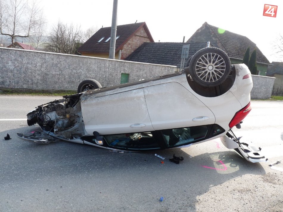Galéria k článku Auto neďaleko Považskej skončilo na streche: FOTO z miesta nehody