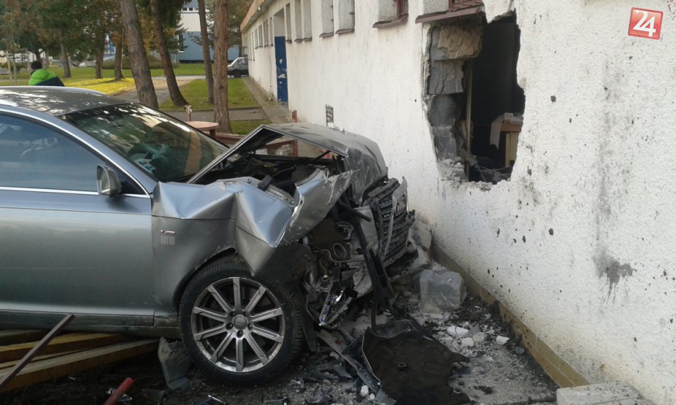 Galéria k článku FOTO: Auto urobilo dieru do zimného štadióna v Považskej Bystrici