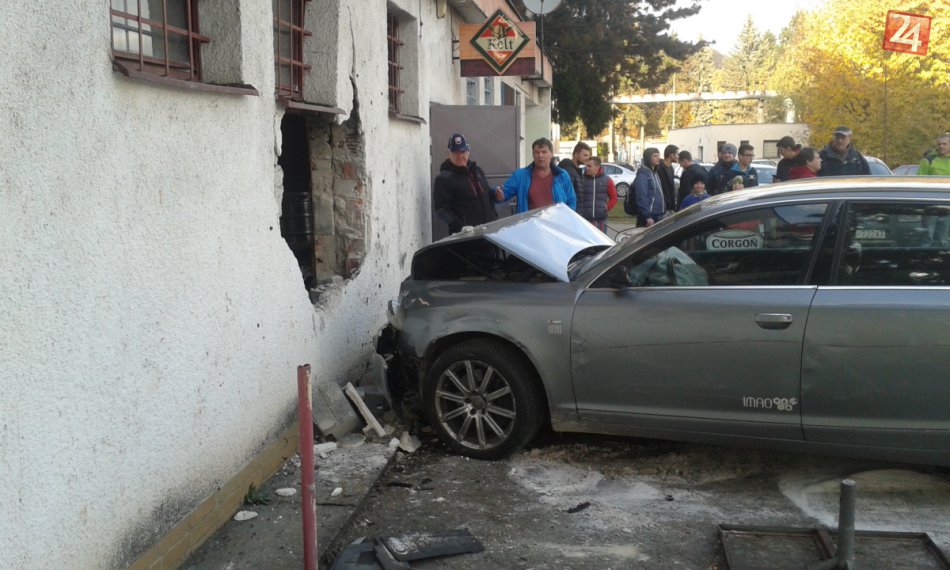 Galéria k článku FOTO: Auto urobilo dieru do zimného štadióna v Považskej Bystrici