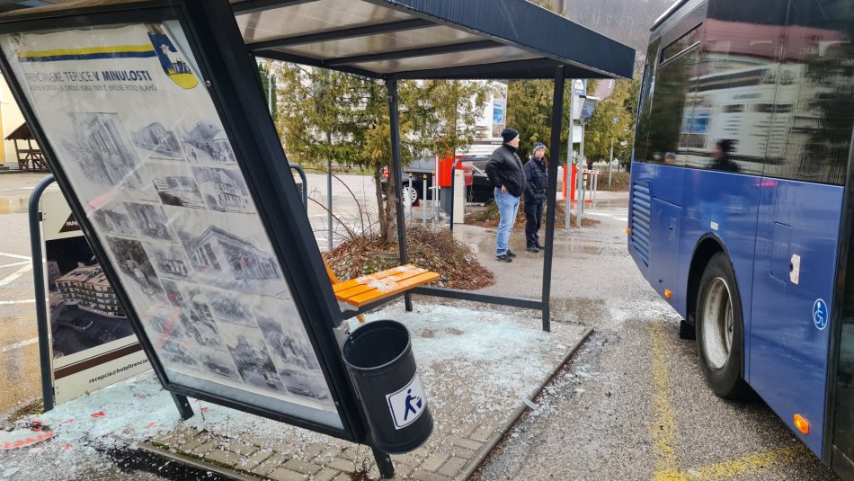 Galéria k článku Autobus v Trenčianskych Tepliciach NARAZIL do zastávky: Hlásili zraneného, FOTO