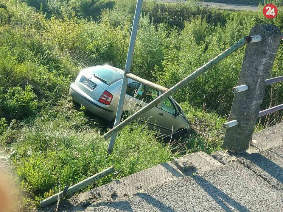 Galéria k článku Zrážka na železničnom priecestí: Auto skončilo v koryte rieky Handlovka, FOTO