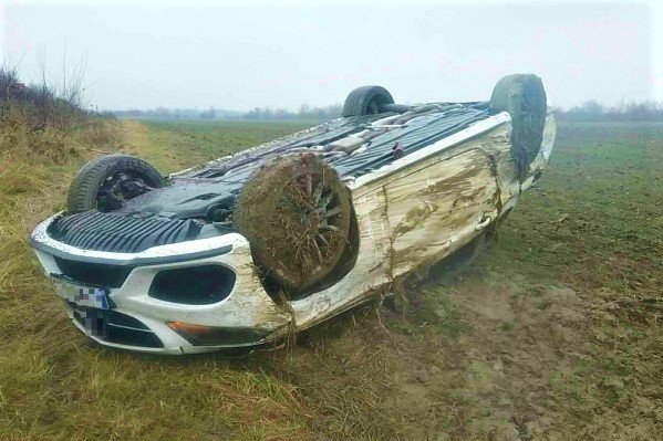 Galéria k článku Auto sa na D1 prevrátilo mimo cestu a „vykúpalo“ v blate: Jeden zranený, FOTO