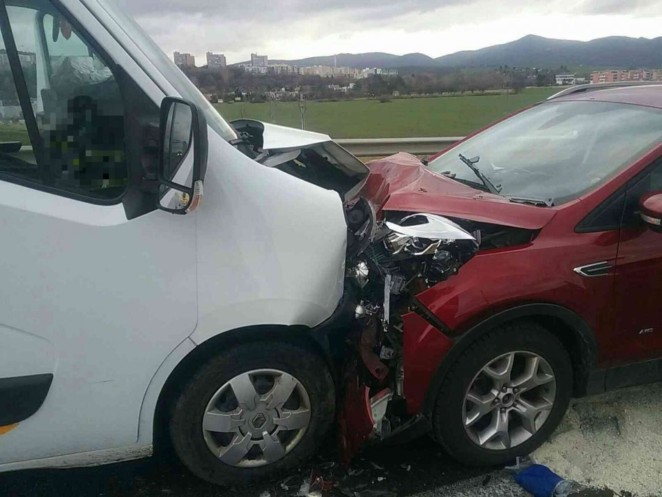 Galéria k článku Vážna nehoda v Trenčíne: Dvojicu zranených previezli sanitky do nemocnice, FOTO