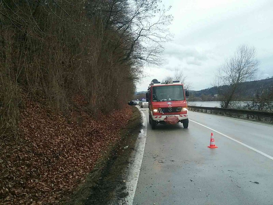 Galéria k článku Zrážka dodávky a auta pri Považskej: Zranený šiel sanitkou do nemocnice, FOTO