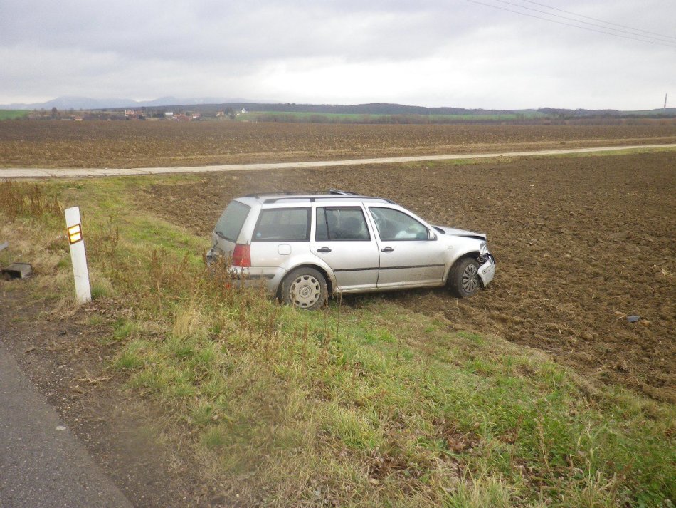 Galéria k článku Nehoda v Podlužanoch: Jedno auto blokovalo cestu, druhé skončilo v poli, FOTO