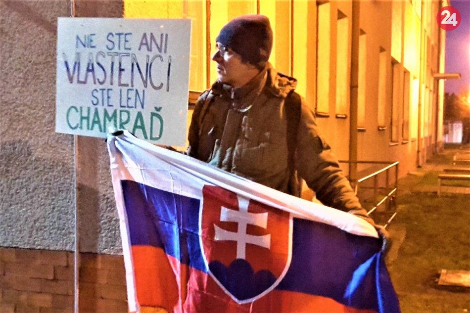 Galéria k článku Beluša bez nenávisti: Kotlebovci sa zišli v kulturáku, vonku stáli demonštranti, FOTO