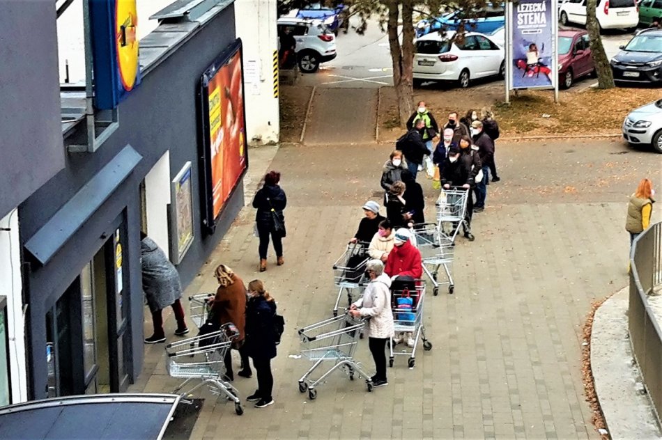 Galéria k článku Lockdown priniesol CHAOS: Dlhé rady pred obchodmi v Považskej Bystrici, FOTO