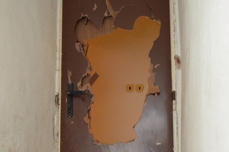 Galéria k článku Žena zažila noc HRÔZY: Zúrivý Trenčan vyrúbal otvor do dverí a vnikol dnu, FOTO