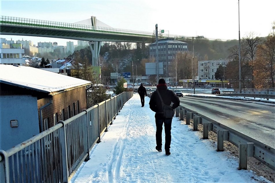 Galéria k článku Mama musela tlačiť kočík na Orlovskom moste po CESTE: Prečo neodhrnuli chodníky?