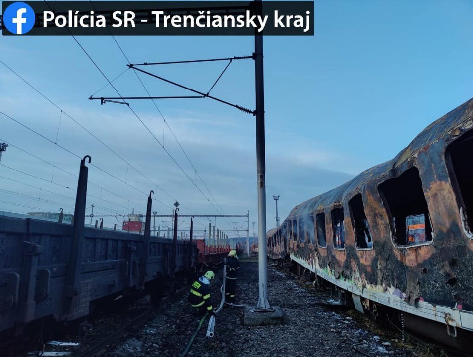 Galéria k článku Požiar na železničnej stanici: Oheň zlikvidoval vozne skôr, ako chceli, FOTO