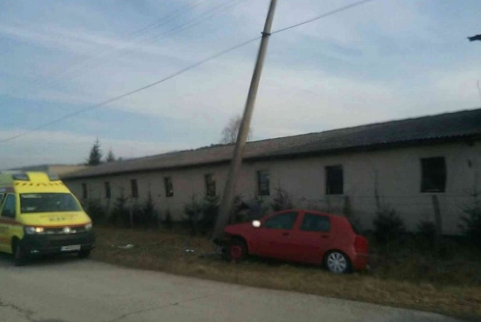 Galéria k článku Zranený po nehode v okrese Prievidza: Auto po náraze zlomilo stĺp, FOTO