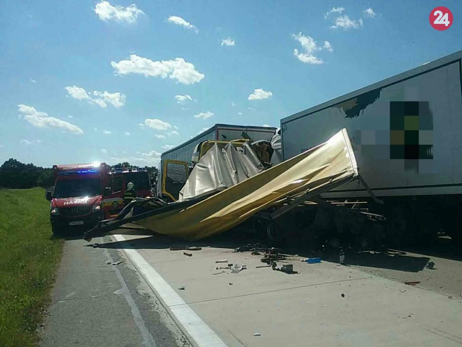 Galéria k článku Vážna nehoda pri Trenčíne: Po zrážke 3 kamiónov hlásia zranených, FOTO