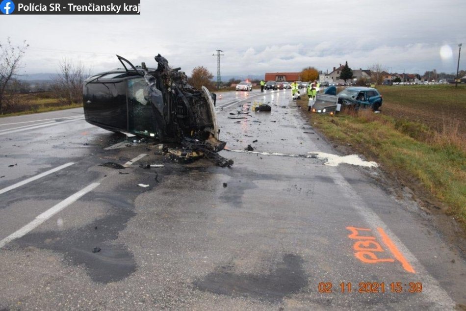 Galéria k článku Pri nehode neďaleko Trenčína sa zranili traja ľudia: FOTO priamo z miesta