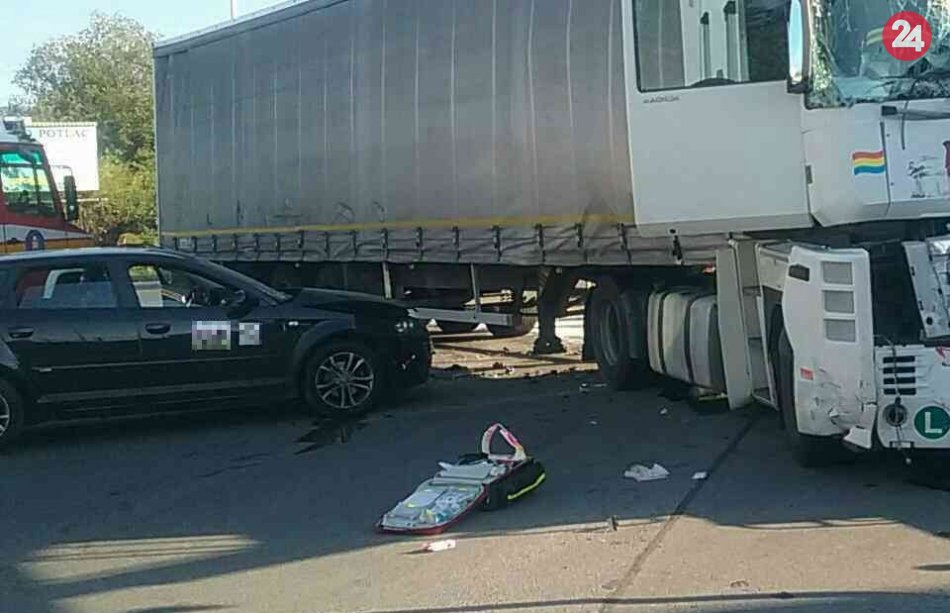 Galéria k článku V Prievidzi sa zrazili dva nákladiaky s autom: Hlásia troch zranených, FOTO