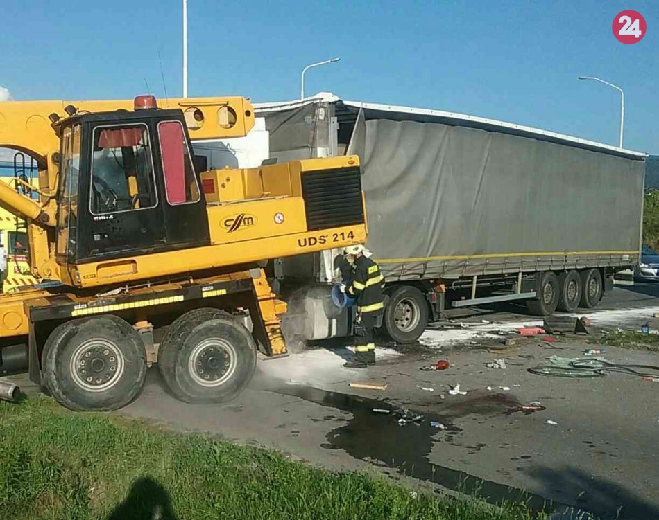 Galéria k článku V Prievidzi sa zrazili dva nákladiaky s autom: Hlásia troch zranených, FOTO