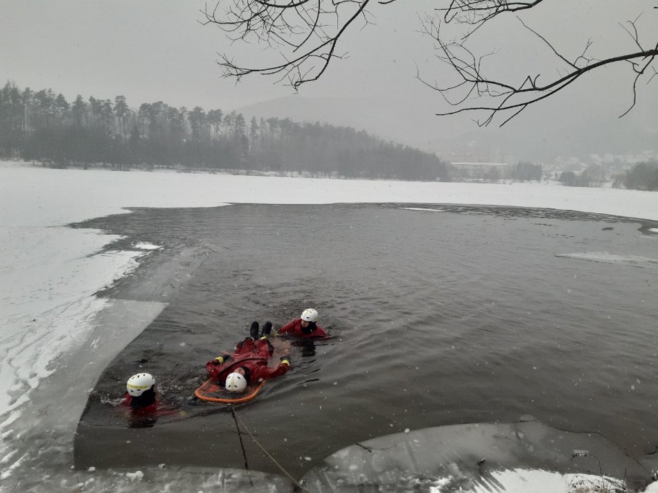Galéria k článku Prievidzskí hasiči cvičili v ľadovej vode nádrže Kanianka, FOTO
