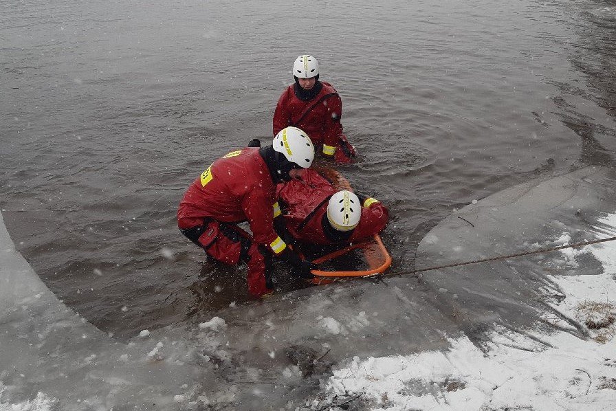 Galéria k článku Prievidzskí hasiči cvičili v ľadovej vode nádrže Kanianka, FOTO