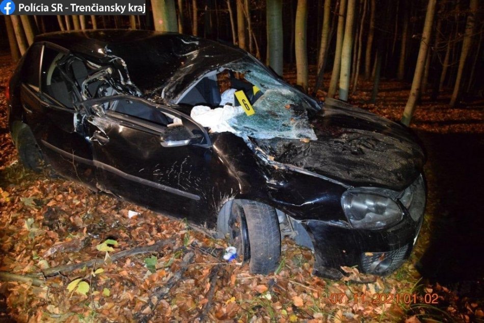 Galéria k článku Opitý vodič narazil do bukov a prevrátil auto: Spolujazdec bojuje o život, FOTO