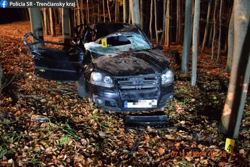 Galéria k článku Opitý vodič narazil do bukov a prevrátil auto: Spolujazdec bojuje o život, FOTO