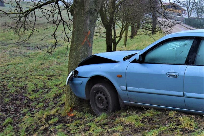 Galéria k článku Opitý vodič narazil do stromu a odišiel: FOTO z miesta nehody v Trenčíne