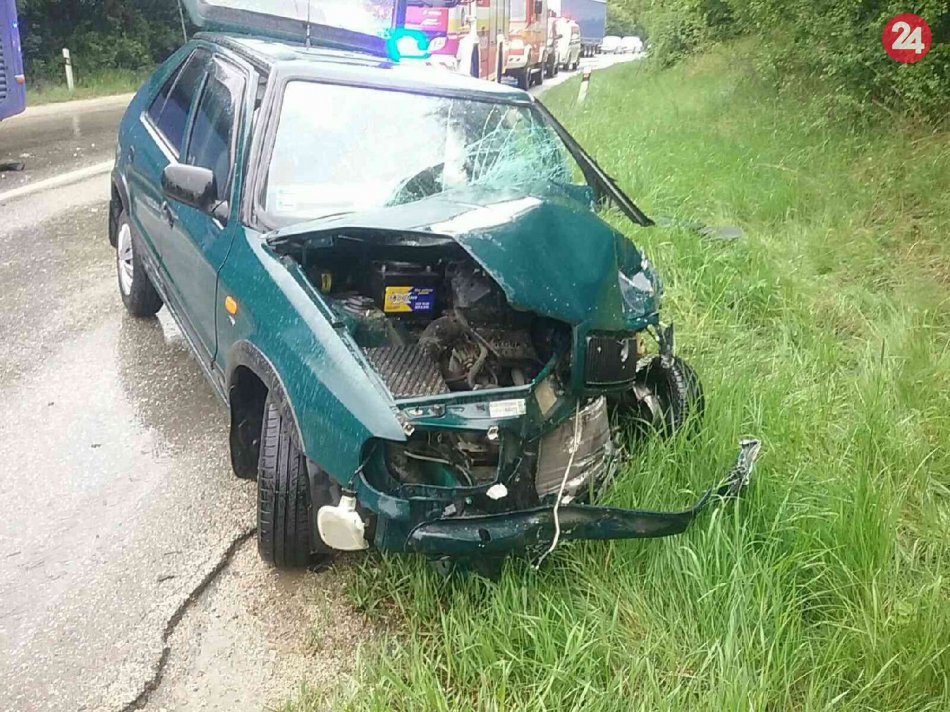 Galéria k článku Zrážka autobusu s autom: Po nehode traja zranení, FOTO