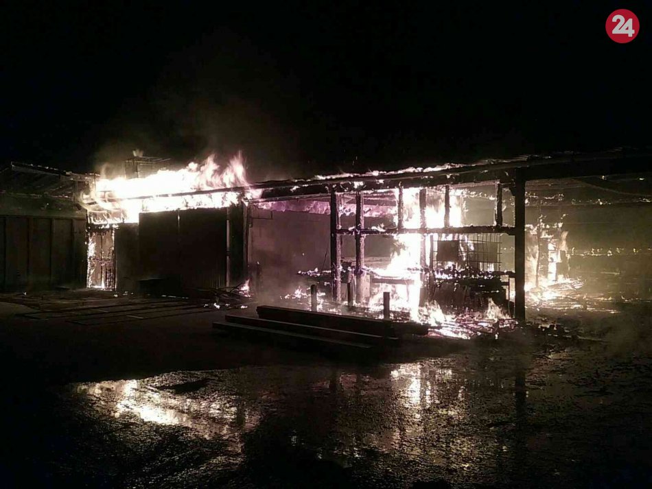 Galéria k článku Rozsiahly požiar drevovýroby na Považí: Profesionálom pomáhali aj dobrovoľníci, FOTO