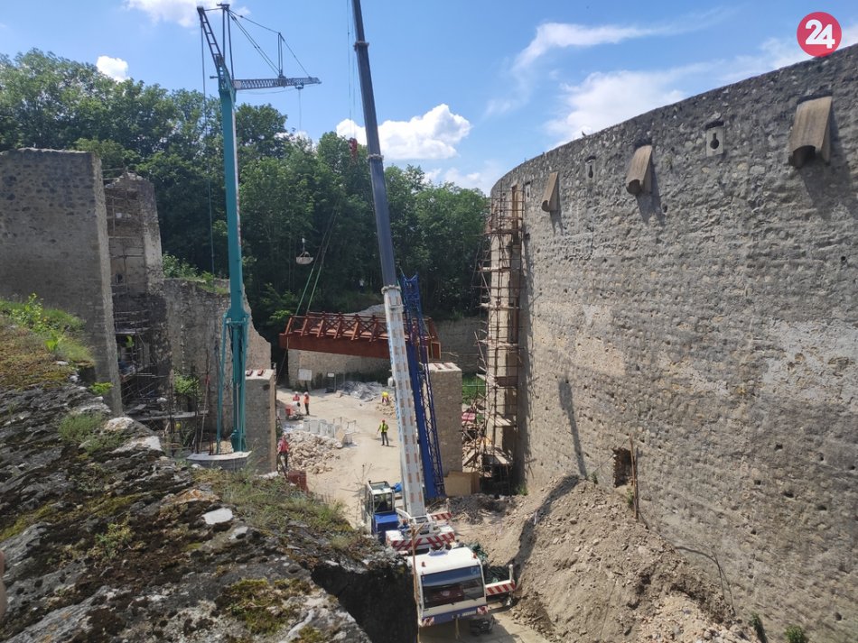 Galéria k článku Nový prístup na Trenčiansky hrad: Začala inštalácia mosta a lávky, FOTO