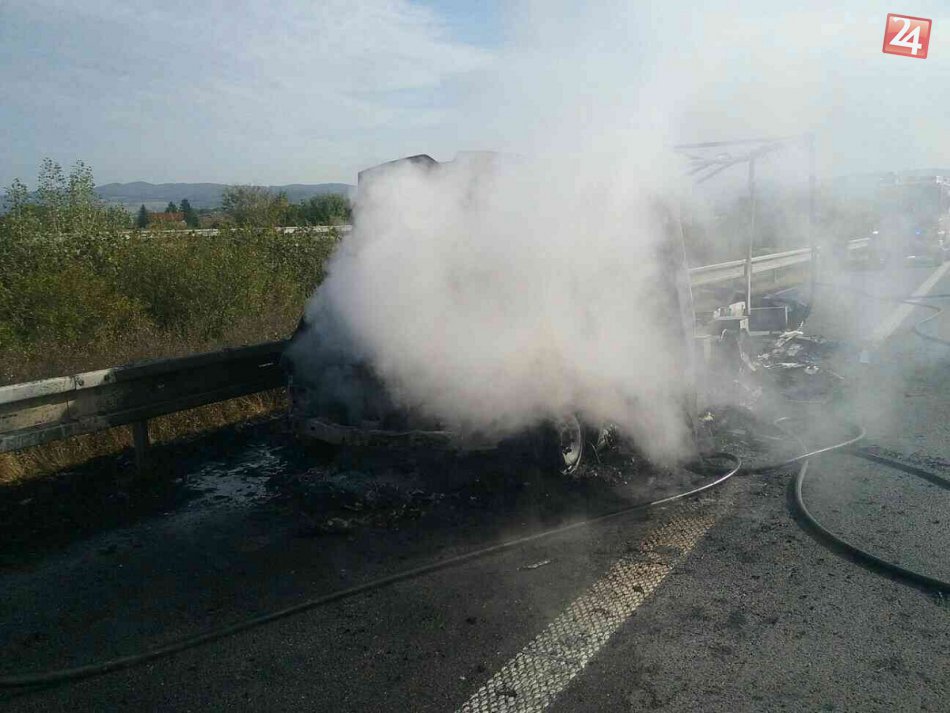 Galéria k článku Považskobystrickí hasiči v akcii: Na diaľnici horela dodávka, FOTO