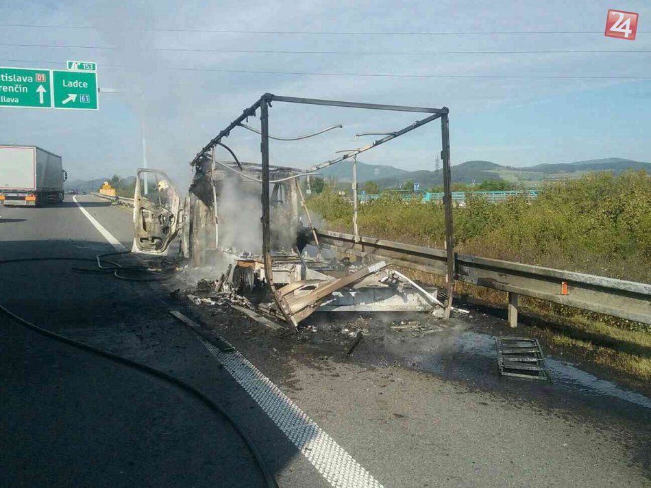 Galéria k článku Považskobystrickí hasiči v akcii: Na diaľnici horela dodávka, FOTO