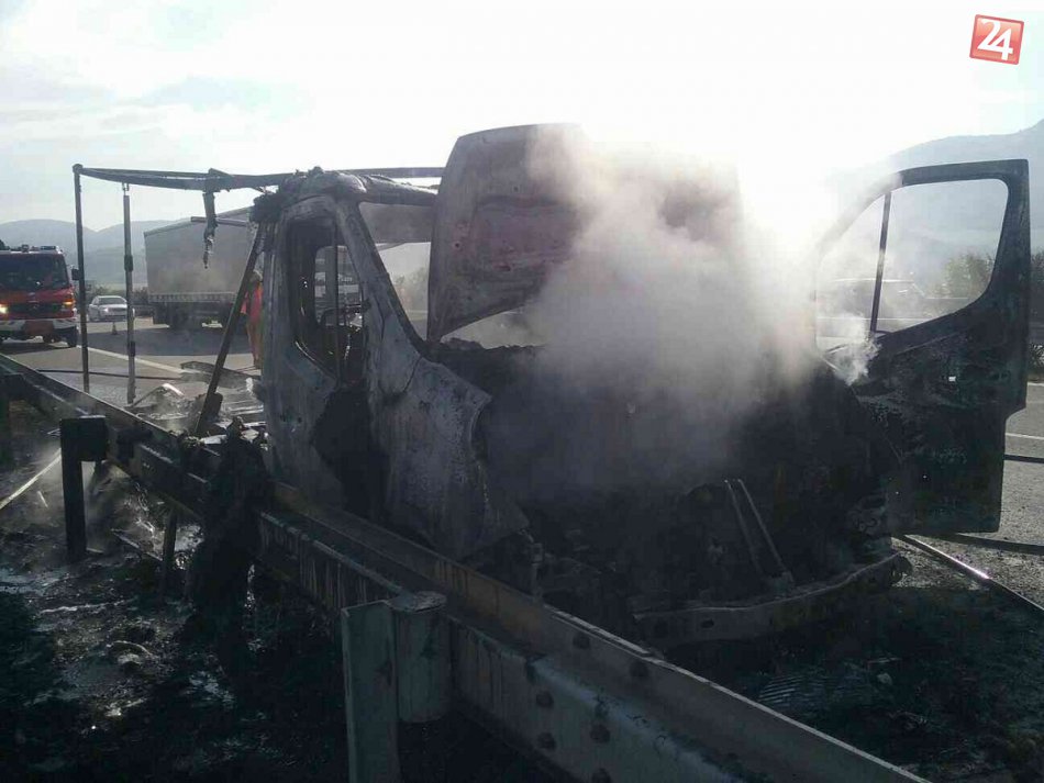 Galéria k článku Považskobystrickí hasiči v akcii: Na diaľnici horela dodávka, FOTO