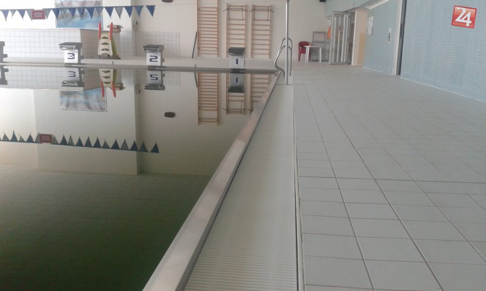 Úsek medzi bazénom a ženskými šatňami, do ktorých presiakla voda