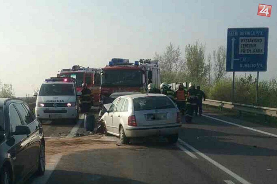 Galéria k článku Dopravná nehoda na privádzači D1 v Trenčíne: Štyria ľudia zranení! FOTO