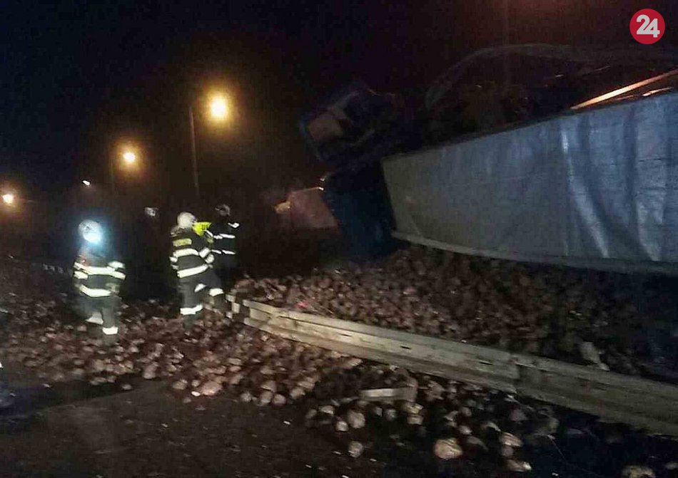 Galéria k článku Nehoda ťahača na diaľnici v okrese Trenčín: FOTO priamo z miesta