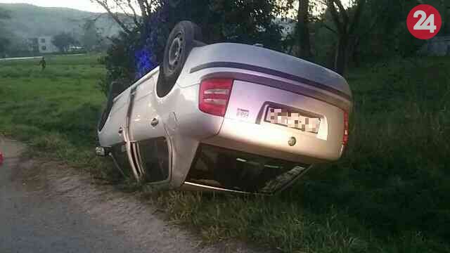 Galéria k článku FOTO: Auto v Považskobystrickom okrese skončilo na streche, jeden zranený