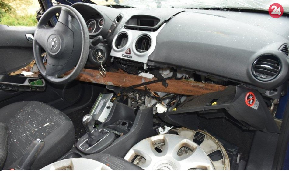Galéria k článku Len o vlások unikli smrti: Auto v okrese Trenčín sa prevrátilo do potoka a… FOTO