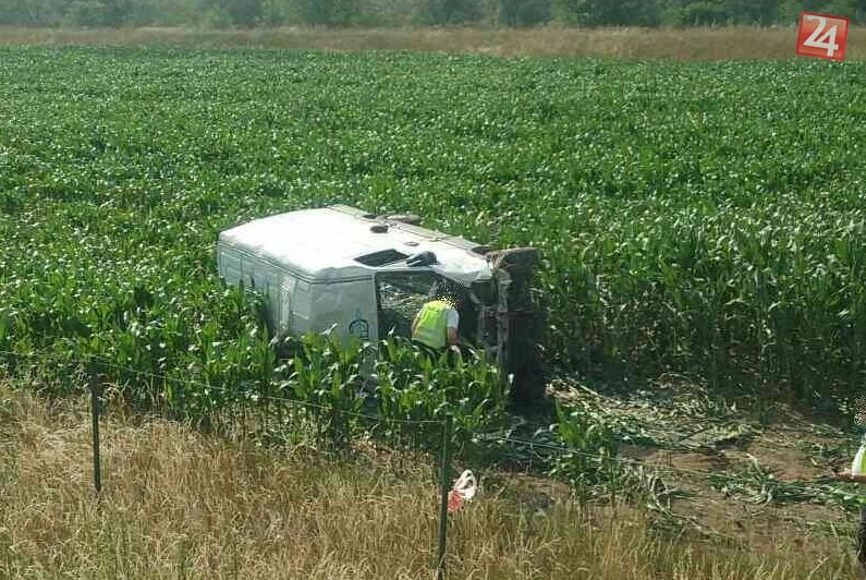 Galéria k článku Dve nehody na D1 neďaleko Považskej: Dodávka skončila v poli mimo diaľnice, FOTO