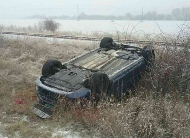 Galéria k článku Nehoda pri Nedožeroch-Brezanoch: Auto skončilo na streche, vodič sa zranil, FOTO