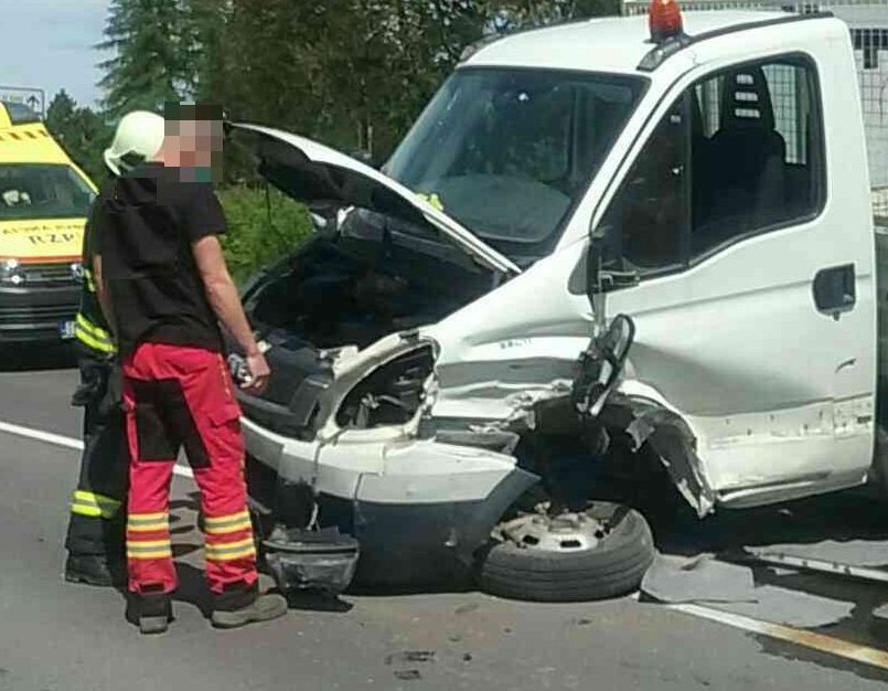 Galéria k článku Zrážka auta a dodávky: Nehoda v okrese Prievidza si vyžiadala zraneného, FOTO