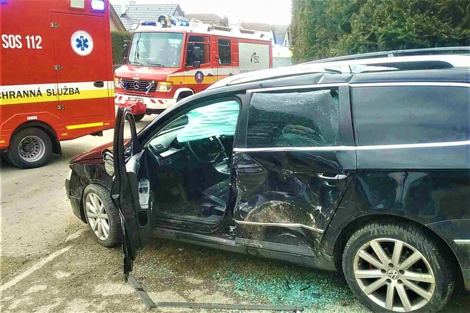Galéria k článku Zrážka áut v okrese Trenčín: Sanitky odviezli dvoch zranených do nemocnice, FOTO
