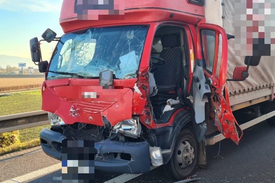 Galéria k článku Neprejazdná cesta po nehode na diaľnici pri Trenčíne: FOTO priamo z miesta
