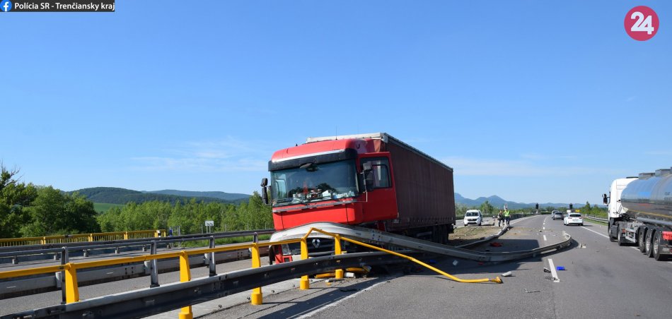 Galéria k článku Obmedzená D1 pri Nemšovej: Poľský kamión zrámoval stredové zvodidlá, FOTO