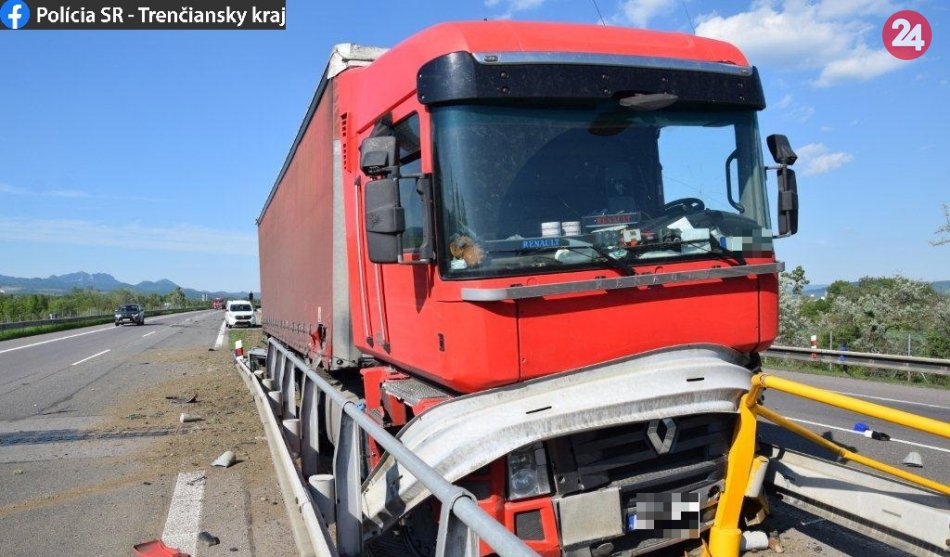 Galéria k článku Obmedzená D1 pri Nemšovej: Poľský kamión zrámoval stredové zvodidlá, FOTO