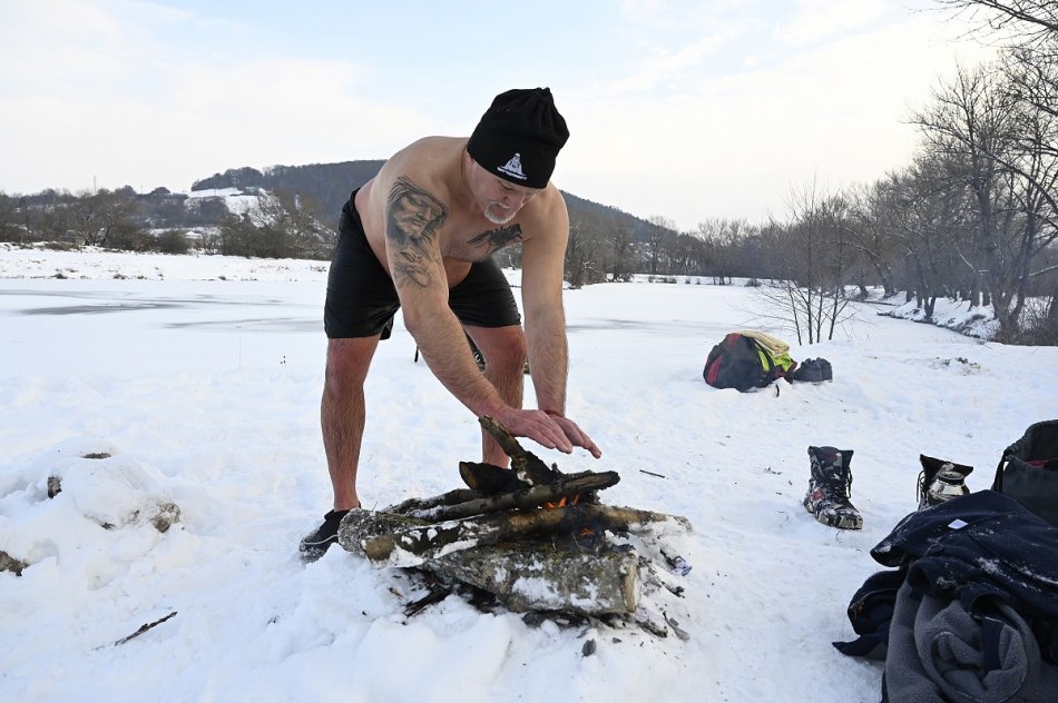 Galéria k článku Trenčianske tulene v akcii: Otužilci si zaplávali v jazierku na Ostrove, VIDEO