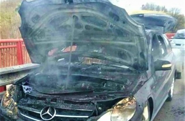 Galéria k článku Mercedes v plameňoch: Považskobystrickí hasiči o príčine požiaru, FOTO