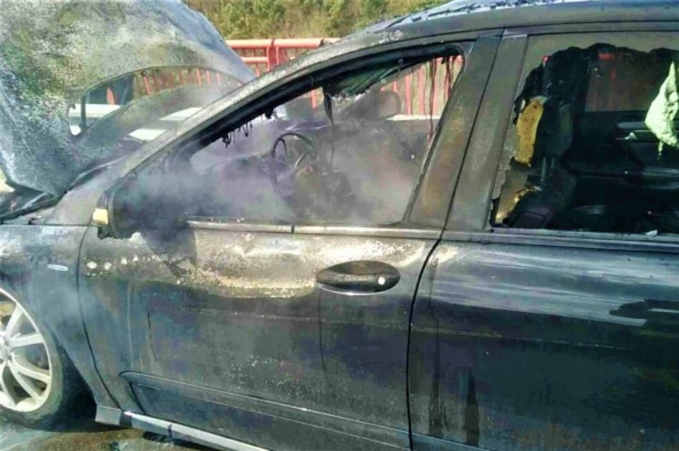 Galéria k článku Mercedes v plameňoch: Považskobystrickí hasiči o príčine požiaru, FOTO