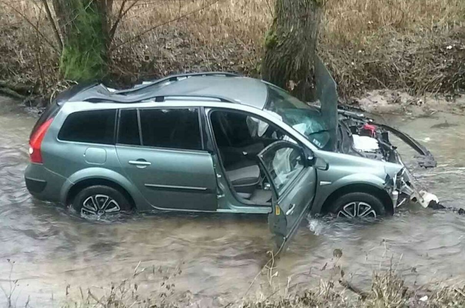 Galéria k článku Auto skončilo v Domanižanke: Na pomoc museli prísť hasiči, FOTO