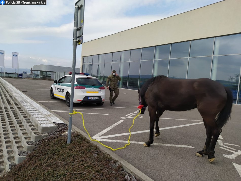 Galéria k článku Kuriozita pri Trenčíne: Splašeného koňa naháňala na hlavnej ceste polícia, FOTO