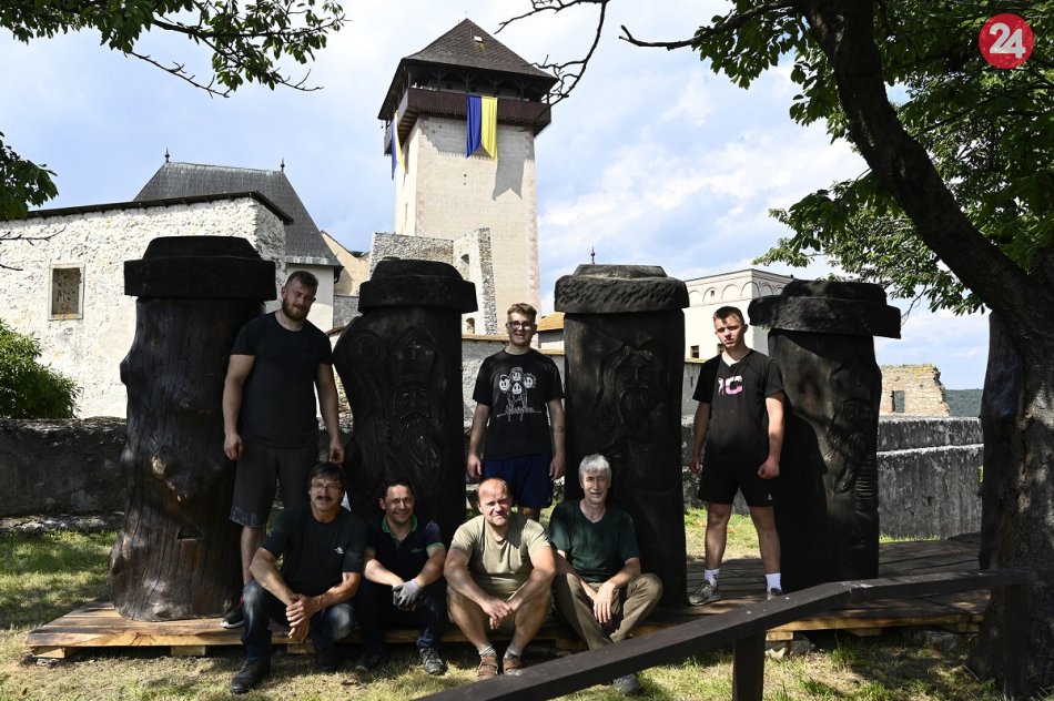 Galéria k článku Trenčiansky hrad má 7 zaujímavých prírastkov: Vyniesť ich pomohli siláci, VIDEO