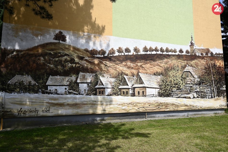 Galéria k článku Stará Prievidza v obrazoch na panelákoch: Dokončuje sa nádherné dielo, VIDEO